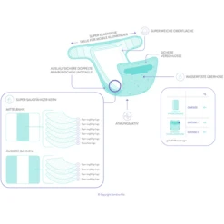 - Verkrijgbaar in twee maten: Maat 1 (< 6 maanden), Maat 2 (6+ maanden).