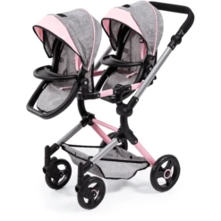 - De poppenbuggy is zeer stabiel en heeft een opvouwbare kap, een veiligheidsgordel en een groot bagagenet