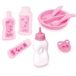 De bijgeleverde verzorgingsartikelen zorgen ook voor veel speelplezier. Dankzij de fles, het bord en het bestek kan de pop uitgebreid worden gevoed en met behulp van de fopspeen worden getroost.