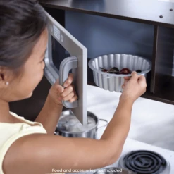 Deze keuken is chic en modern – precies goed voor jonge koks. Deze houten keuken kent vele details, zoals een smartfoon en een krijtbord. Groot genoeg om gezamelijk met andere kinderen aan te spelen. De duren van de koelkast, vrijsvak, magnetron, oven en de vaatwasser kunnen worden geopend en gesloten. Krijtbord aan het vriesvak. Handdoek houder. Modern design van het werkblad. Extra opslagruimte boven de wastafel. Uit houtcomposietmaterialen gemaakt. Gedetailleerde, stap-voor-stap handleiding voor de montage is inclusief.