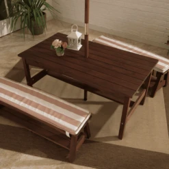 Kidkraft® Kinder tuintafelset met bankjes, kussens en parasol, beige met witte strepen