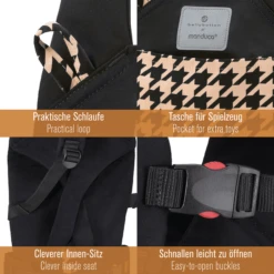 - De drager kan worden aangetrokken als een kinderrugzak.