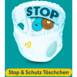 - Pampers Baby-Dry Pants met r evolution ärem Stop & Schutz zakje en 360° Fit voor maximaal 12 uur all-round bescherming tegen doorlekken.