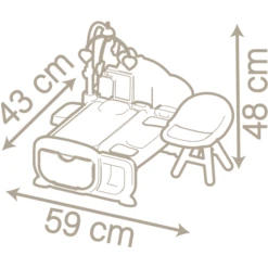 - Afmetingen in gemonteerde toestand (lengte x breedte x hoogte): 59 x 43 x 48 cm.